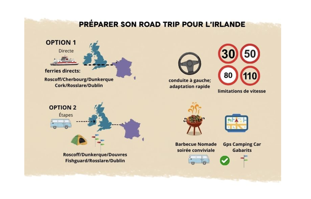 Deux options pour rejoindre l’Irlande en camping-car depuis la France.