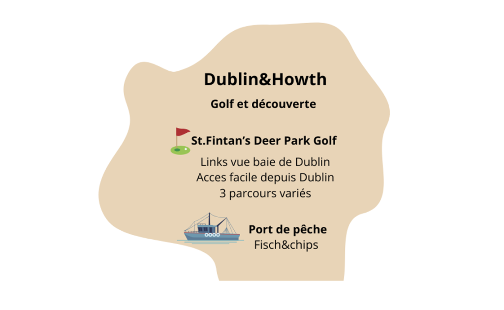 À deux pas du club, le sentier côtier Howth Cliff Walk invite à longer les falaises. Ce circuit de 5 km mène au phare avec des vues spectaculaires. Le parcours prend environ 1h30 à pied, idéal pour digérer un copieux petit-déjeuner irlandais. Après le golf, direction le port pour un « fish and chips » face aux bateaux qui dansent sur les vagues.